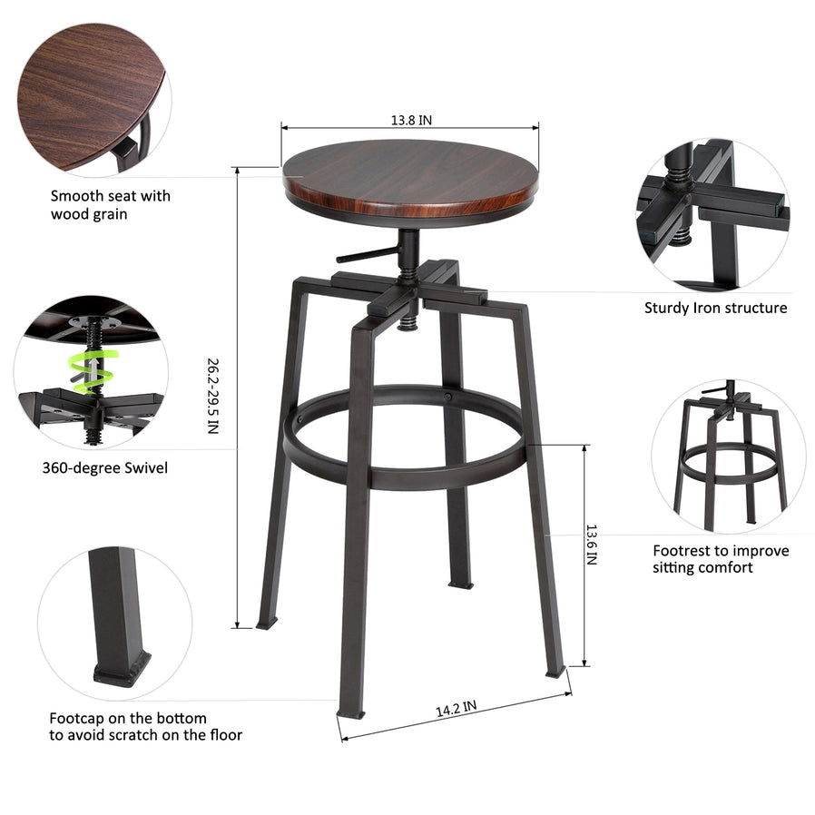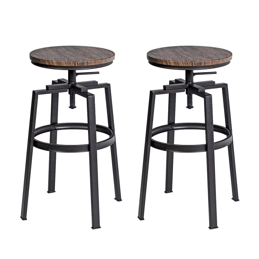 Farm Style / Industrial 26''-29'' Adjustable Height Swivel Counter Barstool (Pair-set of 2)