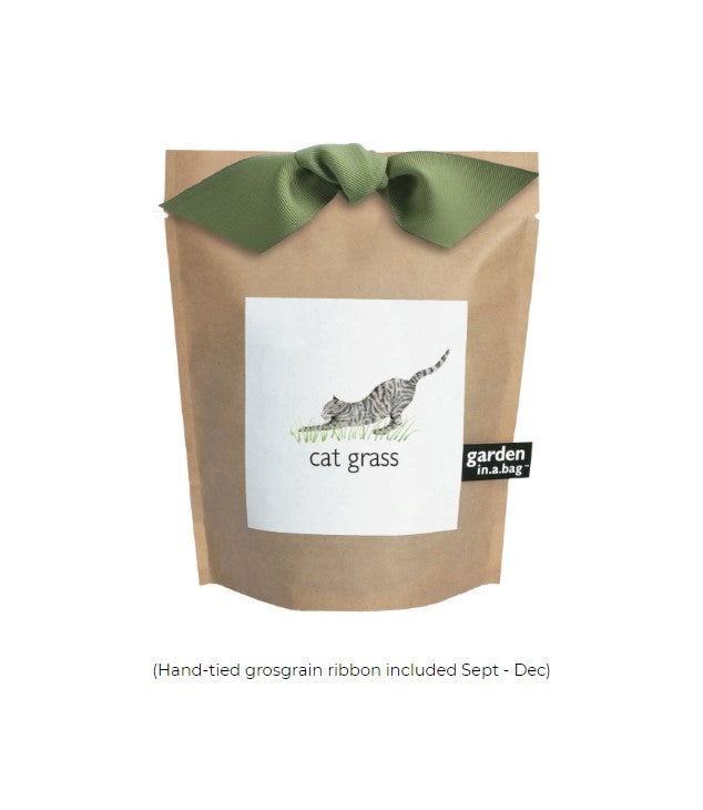 Grow Cat Grass {Wheat Grass, Triticum aestivum} in a windowsill or any sunny spot indoors, year-round, directly in the leak proof bag. Wheat Grass is good for cats-providing essential vitamins and minerals. It is also rich in Chlorophyll which acts as a natural detoxifier, mild antibiotic and deodorizer. An easy to grow organic treat for pet health and vitality.